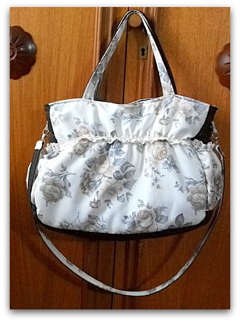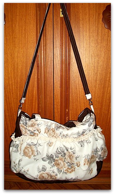 Leírása: 2 fiókkal rendelkező táska virágos vászonból, ekrü pamut csipkével. Cipzárral záródik. Vállpántja levehető. Vatelinnal bélelt pamutvászon a belseje, üdítő tartópántot és belső zsebet tartalmaz. Strapabíró, mosógépben mosható.