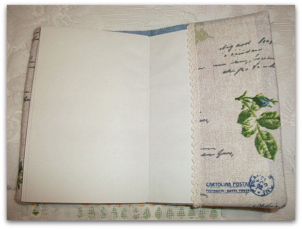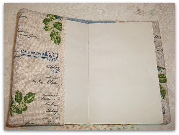 Leírása: Vászon borítású napló vagy receptfüzet, belseje farmer. A borítója pamutcsipkével díszített, elején kék szalaghímzéses virágmotívum gyönggyel.